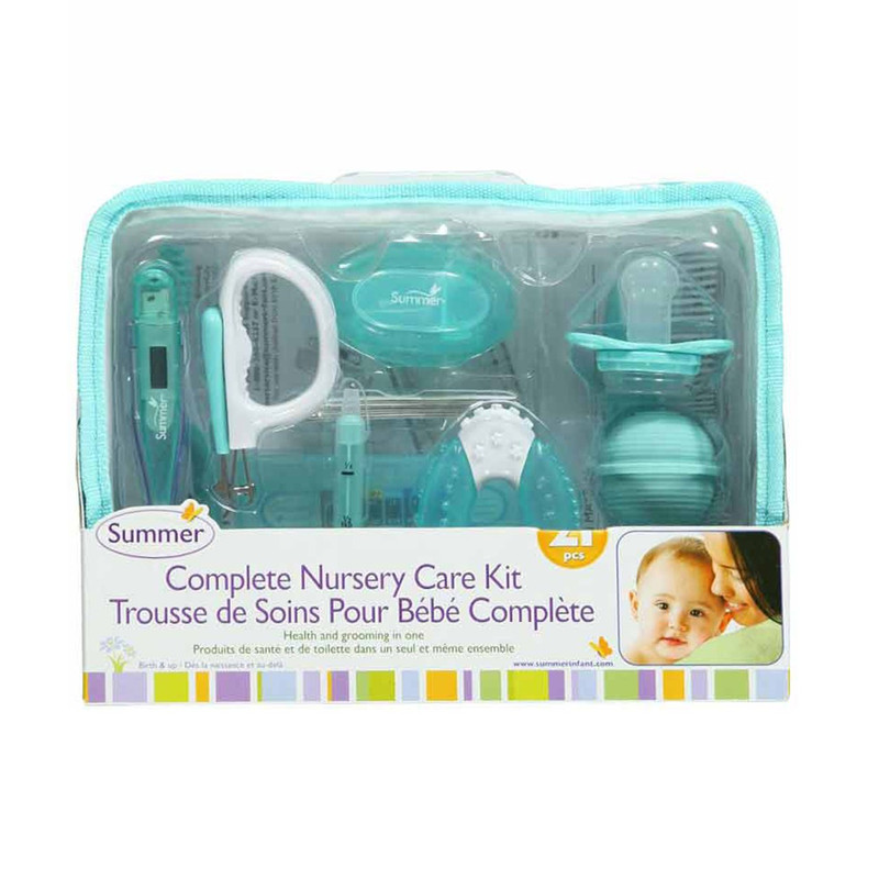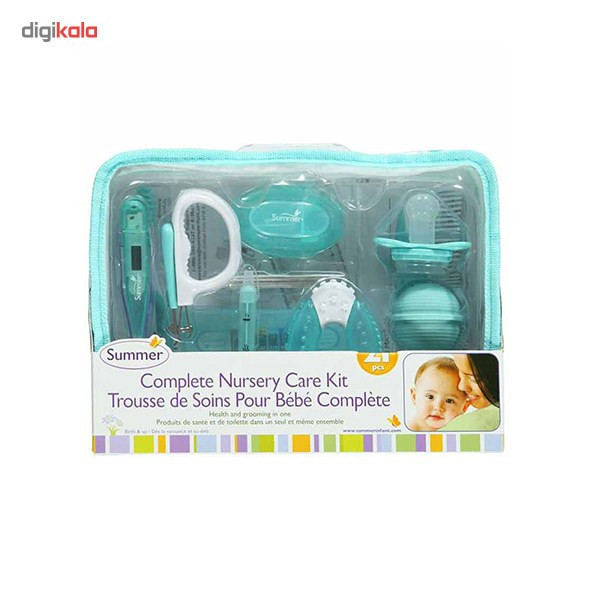 برای مراقبت از پوست لطیف نوزاد نیاز به لوازمی است که بایستی از جنس و کیفیت بالایی برخوردار باشد تا به پوست لطیف و حساس کودک آسیبی وارد نکند. معمولا قرار داشتن تمامی لوازم بهداشتی کودک در کنار هم و در یک مجموعه، علاوه بر همرنگ بودن و از یک برند بودن، مقرونبهصرفه خواهد بود. همچنین داشتن یک کیف برای تمامی این وسایل ریز باعث میشود تا از گمشدن آنها جلوگیری شود. ست بهداشتی برند «سامر» یک مجموعه کامل از تمام وسایلی است که از بدو تولد نوزاد مورد نیاز شما میشود. این ست 21 تکه، شامل ضروریترین و پرکاربردترین لوازم اولیه است. این ست شامل شانه و برس بوده که برس آن دارای الیاف نرم است. همچنین شانه آن دارای دندانههای گرد و منظم است. در این مجموعه دو نوع مسواک قرار داده شده است. یک مسواک آموزشی است و کودک قبل از مسواکهای معمولی از آن استفاده میکند، این وسیله طرز دستگرفتن مسواک را به کودک آموزش میدهد. همچنین مسواک انگشتی موجود در این مجموعه، بعد از خوراندن قطره آهن به نوزاد به کار شما میآید، به واسطه این مسواک قطره آهن از روی لثه نوزاد پاک میشود و مانع از سیاه شدن لثه نوزاد میشود. پوآربینی از دیگر لوازمی است که در این کیف قرار دارد. برای پاک کردن بینی نوزاد و جلوگیری از گرفتگی آن، بهتر است روزی یکبار از این وسیله استفاده کنید. پوآربینی این برند، جنس پلاستیکی مرغوبی داشته و کاملا انعطافپذیر است. ناخنگیر با سری فلزی، سوهان ناخن و دندانگیر از دیگر وسایلی هستند که در این مجموعه قرار دارند. همچنین برای خوراندن داروهای تلخ مانند قطره آهن و غیرتلخ، دو نوع داروخوری متفاوت در این کیف قرار داده شده است. برای داروهای تلخ از داروخوری سرنگی و برای داروهای غیرتلخ از داروخوری پستانکی میتوانید استفاده کنید. دو نوع تبسنج با کارایی متفاوت، از دیگر لوازمی هستند که در این مجموعه برای راحتی کار شما قرار داده شدهاند.