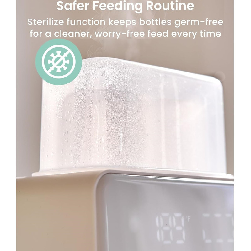 ایمن و راحت: دارای عملکرد خاموش شدن خودکار است که از گرم شدن بیش از حد جلوگیری میکند و کنترل دقیق دما را تضمین میکند. صفحه نمایش LED و چراغ خواب، تغذیه در شب را تسهیل میکنند و تایمر از پیش تعیین شده به شما امکان میدهد تا گرم شدن را از قبل برنامهریزی کنید، بنابراین شیر در صورت نیاز آماده است.