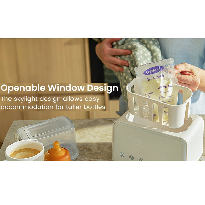طراحی دو شیشه شیر: دو شیشه شیر با اندازهها و جنسهای مختلف را به طور همزمان در خود جای میدهد. گرمکن میتواند شیر مادر، شیر خشک و آب را گرم کند، شیر را یخزدایی کند، غذای کودک را گرم کند و وسایل را تا 24 ساعت گرم نگه دارد و انعطافپذیری و راحتی را برای هر برنامه تغذیهای ارائه میدهد.
