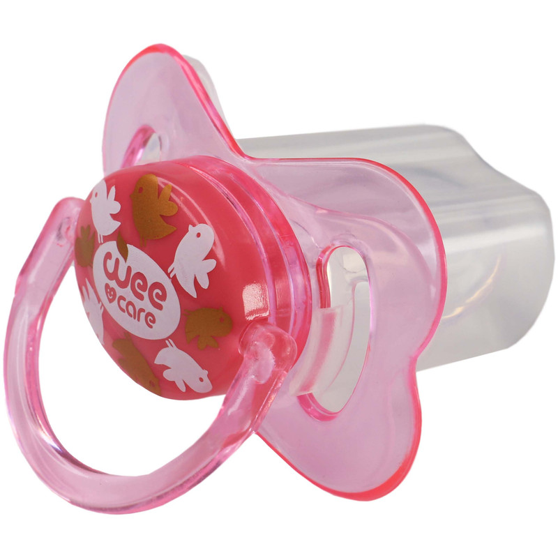 پستانک ارتودنسی وی کر مدل دربدار دسته دار شفاف چاپدار پروانه ای سایز 0-6 ماه کد P127