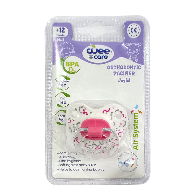 پستانک ارتودنسی وی کر از نرم ترین مواد سیلیکونی با گرید غذایی ساخته شده است و شکل بدنه و نوک پستانک به گونه ای طراحی شده است که بطور کامل در دهان کودک قرار گیرد و به همین دلیل کمترین تاثیر را بر روی دندان های طبیعی کودک می گذارد. دسته موجود بر روی پستانک این اجازه را به شما می دهد که به راحتی آن را از دهان کودک خارج کنید، همچنین درپوش محافظ جهت جلوگیری از آلودگی نوک پستانک، هنگامی که ار آن استفاده نمی کنید به کار برده می شود.
