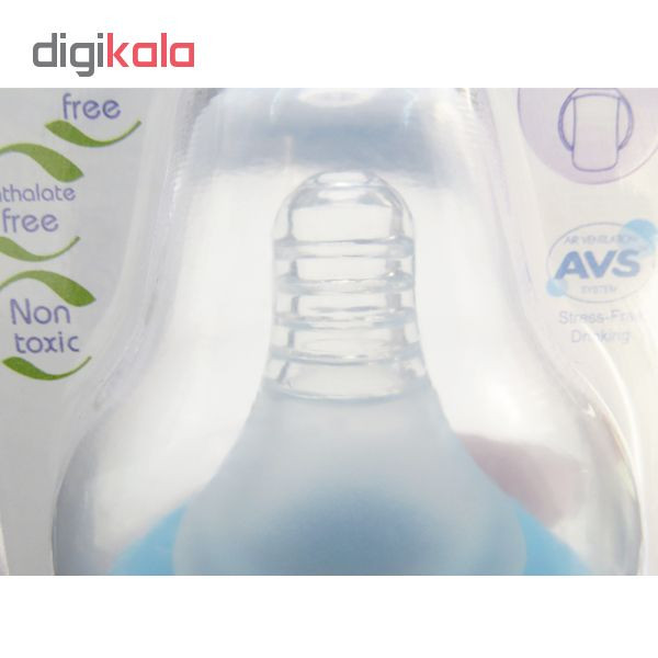 دارای خطوط دایره ای که باعث جلوگیری از چسبندگی و افتادگی و حرکت اسان زبان کودک میشود سیستم خروج هوا و عملکرد ضد نفخ سایز سوراخ سر شیشه متناسب با رشد و سن کودک