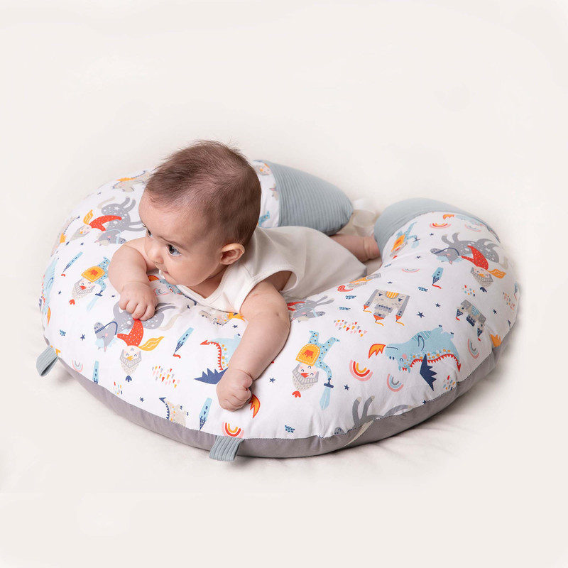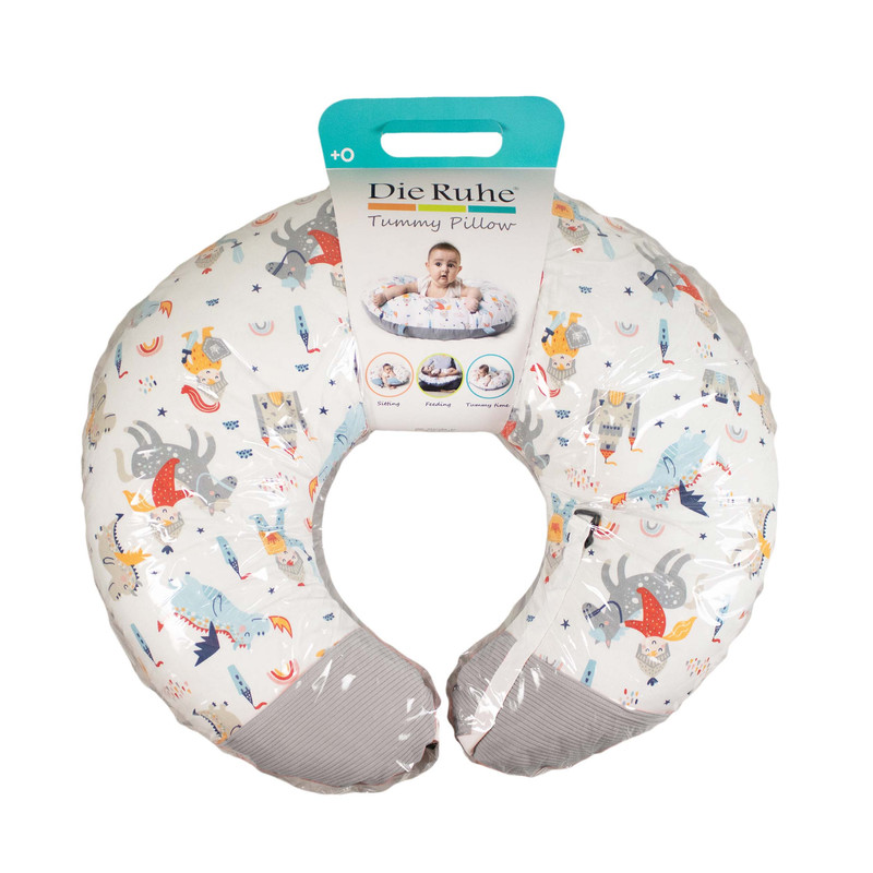 بالش تامی پیلو از برند دی روحه DieRuhe یک بالش چند منظوره است. این بالش به عنوان بالش شیردهی به راحتی با بند به کمر مادر بسته می شود و مادر و نوزاد را در وضعیت ارگونومیک قرار می دهد تا شیر دادن را راحت تر کند و از کمردرد و آسیب های گردن و شانه جلوگیری کند. هم چنین در این حالت می توانید از جیب های این بالش برای قرار دادن پد شیردهی یا وسایل دیگر استفاده کنید. کاربرد دیگر این بالش به عنوان بالش تامی تایم است. برای زمانی که لازم است نوزاد به شکم دراز بکشد. در این حالت می توانید به دو حلقه ای که در بالش وجود دارد دندان گیر یا اسباب بازی های مورد علاقه فرزندتان را آویزان کنید تا کودک از این وضعیت خوابیدن لذت بیشتری ببرد. کاربرد دیگر این بالش برای آموزش نشستن وبه عنوان نشیمن کودک است تا کودک در محیطی ایمن و نرم باشد و نگرانی از افتادن کودک به طرفین وجود نداشته باشد. در این حالت بهتر است با وارو کردن جیب ها بند را درون جیب های دو طرف بالش پنهان کنید تا از دسترس کودک خارج شوند.