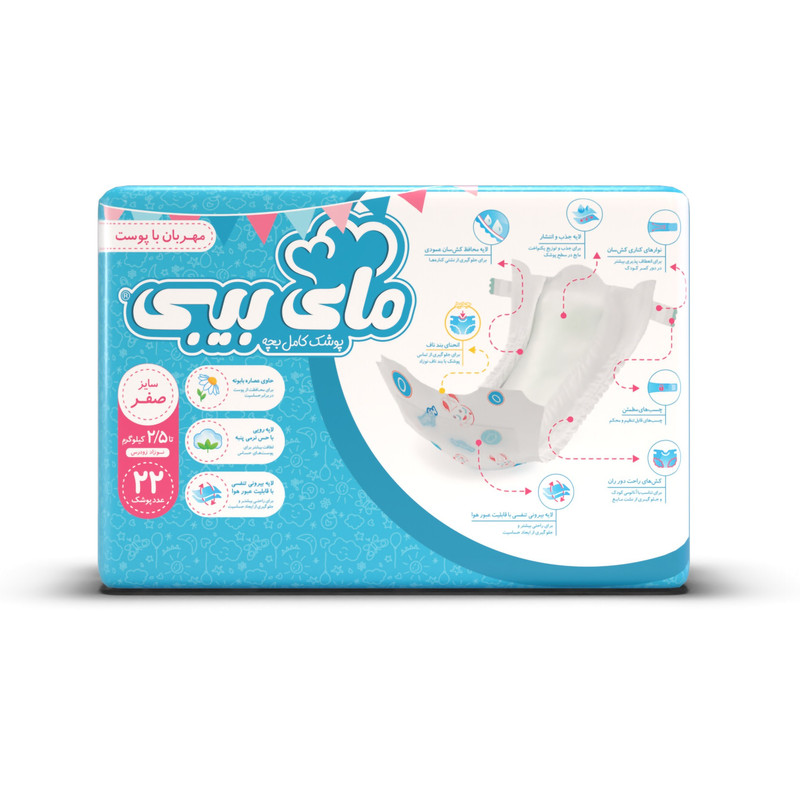 پوشک بچه مای بیبی مدل چسبی سری مهربان سایز ۰ ۳ بسته 22 عددی